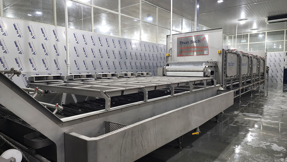 Phan Bach’s high-efficiency steam cooker delivers uniform shrimp cooking with minimal loss and energy use, seamlessly linked to a chilling system for a smooth transition to the IQF stage.